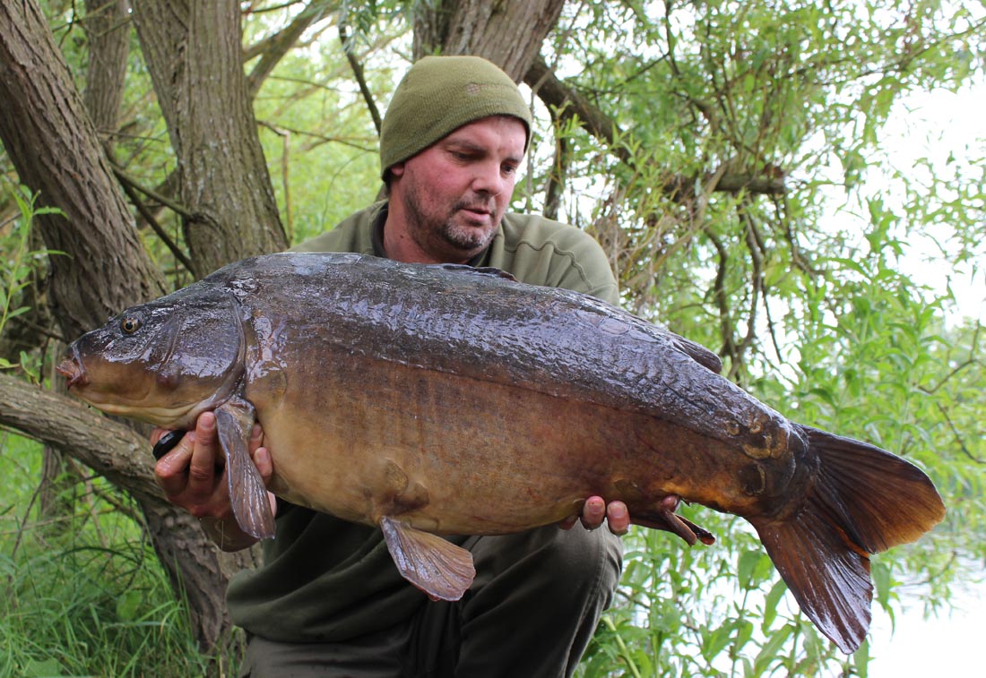 My plan soon came together when a guy turned up and decided to set up directly on top of the fish and it wasn’t long before my swim was full of shows and rolling water pigs. If you can remember from my winter blogs the carp in this venue are a bit on the spooky side and it doesn’t take much angling pressure to move them around the lake. With all the disturbance done before the fish turned up, I was rubbing my hands and hopeful of a bite. Just after dinner my Mugga blow-back set up was away on the smaller trap to the big trap spot. After a battle from hell in the warm sun a 32lb 8oz mirror was gladly looking up from my net (gladly for me anyway as the thing nearly pulled my arm off). After a few quick shots he was soon returned, running off to tell his mates about the dangers in my swim. I just hoped they wouldn’t listen!