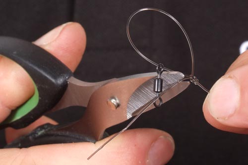 Final 4. Thread Critcal Mass Putty through the swivel eye and wrap around the swivel as shown.