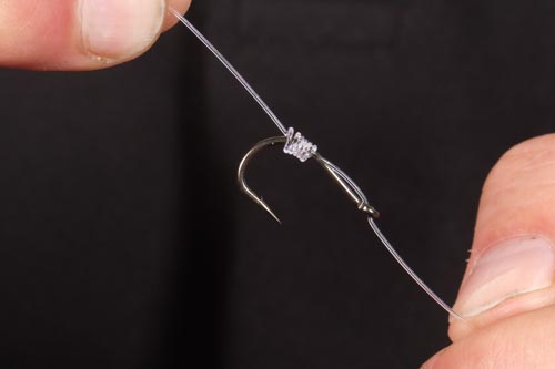 Hook 3. Carefully tighten the knot down. First on the hooklink side of the knot and then tease the wraps down.