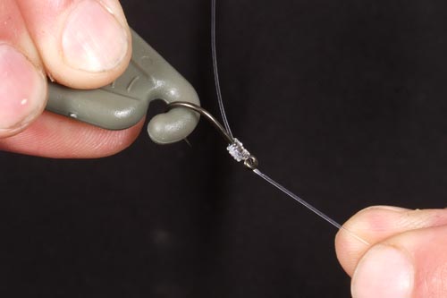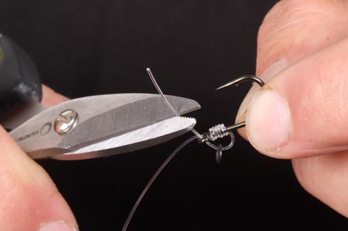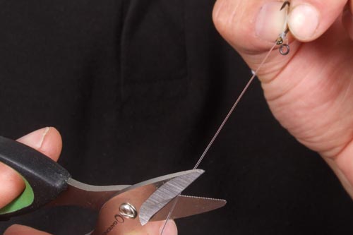 Hook 5. Make sure the extra hooklink material sits parallel to the hook as shown. This ensures the rig will work as intended.