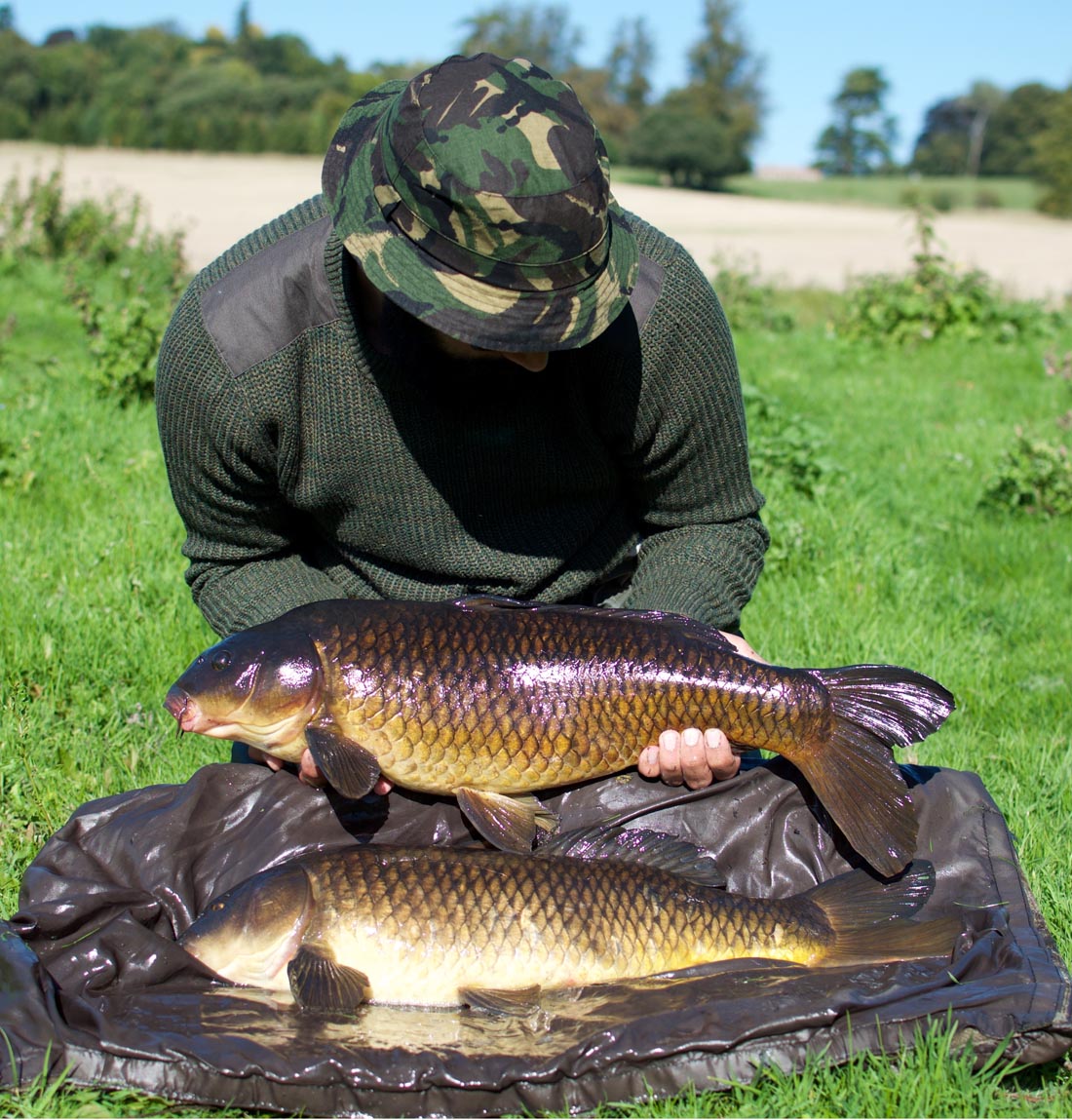 Hastily I rigged up with another lump of paste and I was fishing again. Not long after hitting bottom I had lost ‘feel’ of the hookbait. I gingerly pulled back the mainline between my fingers. I could see it entering the coloured water created by the feeding frenzy. Pulling back further I could feel what I thought was a head shake. A sharp flick of the rod tip and I had set the hook and another angry resident decides to give me the run around for another 5 minutes or so before the second one is secured in the net. A nice double figure, two tone common had its picture taken before being slipped back.