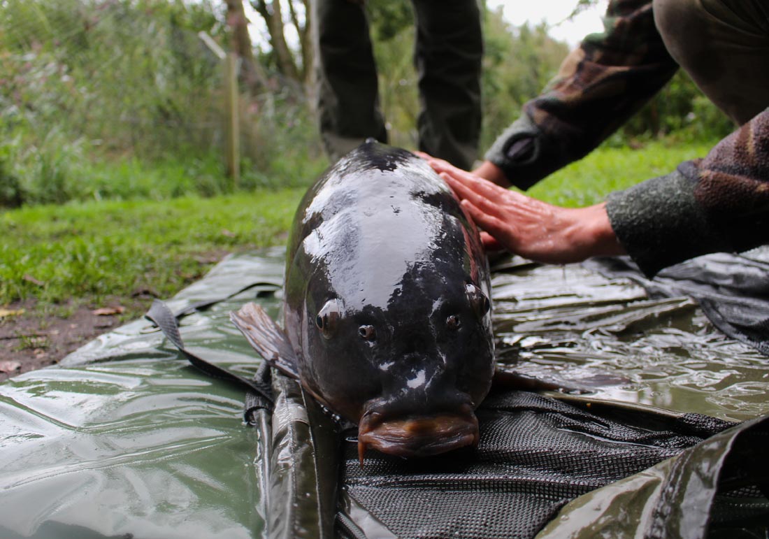 Over a couple of weeks of trying, my overnighters had proved fairly fruitless, at least until I dropped into a swim called ‘Fairy’ late in September. I couldn’t help but feel confident with the amount of shows that evening and I stayed up late drinking coffees and listing to the deep slurps out in front. Just as I was drifting off a short, rapid series of bleeps had me bolt upright. I sat by my rod just as the tip went over. We were in business! After a rather uneventful fight I had a lovely heavily scaled mirror in the net. A friendly chap called Julian helped with the pictures and I quickly fired a bait back out to the mark.