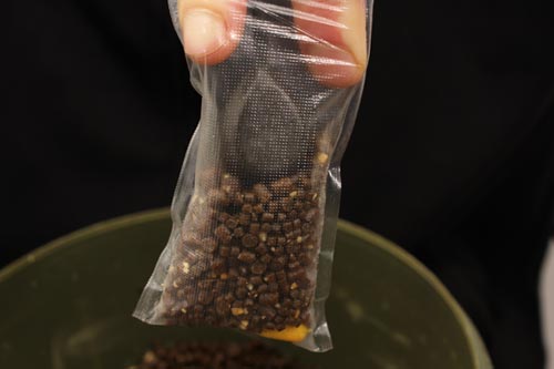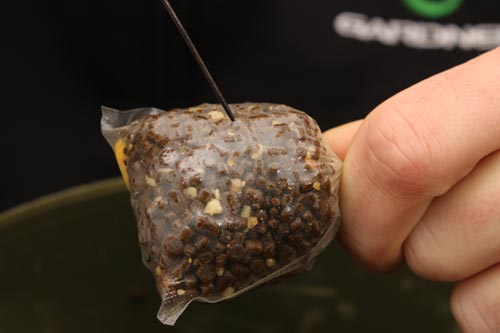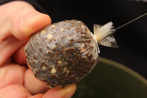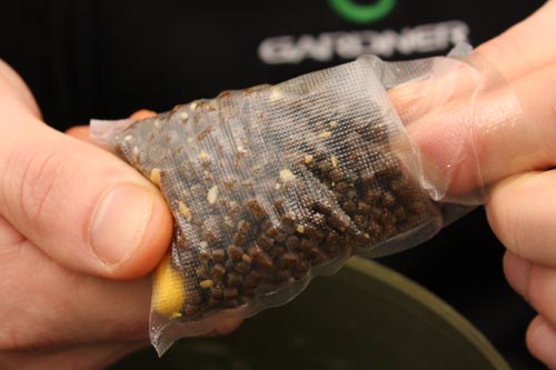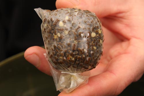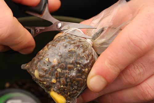 A usual mix consists of a mixture of small pellets and ground boilies. The smaller the size of the individual ingredients the easier it is to compact the finished parcel of bait, removing the air from the bag also helps to make it more streamlined, so it casts further and with greater accuracy.
