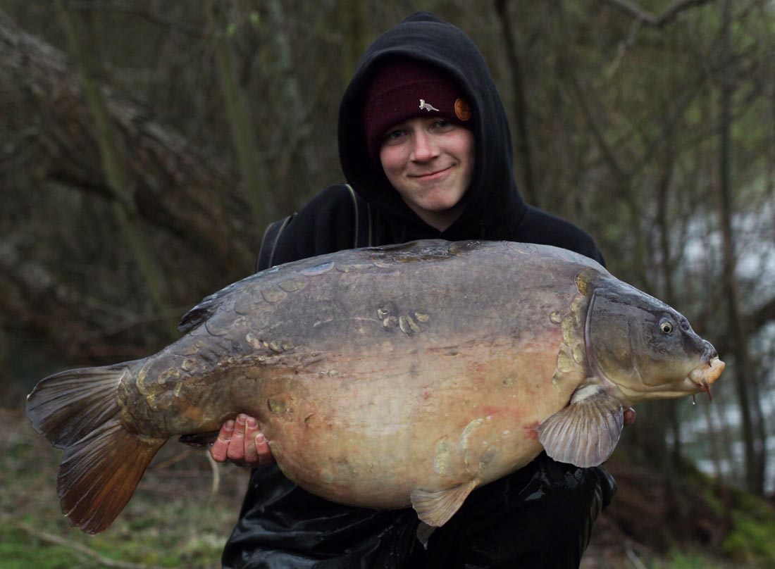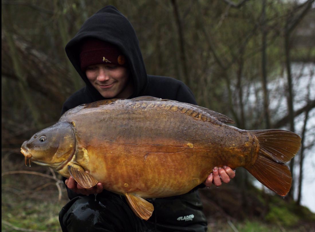 Around half past 3, the right hand rod was away, and I found myself bent into another very angry, big pit carp. My heart was pounding, and I needed to get the waders on. Luckily, Emily had decided to stay the night, and was there to help me get them on. Ten minutes later, there was a lovely orange looking mirror sat in my net. I honestly couldn’t believe it! I raced down to somebody I knew who was fishing a couple of swims up and asked him if I could borrow his retainer (I can assure you, it’s not every day you need to use two retainers on this place). Up on the scales it went 35lb 4oz. I was over the moon.