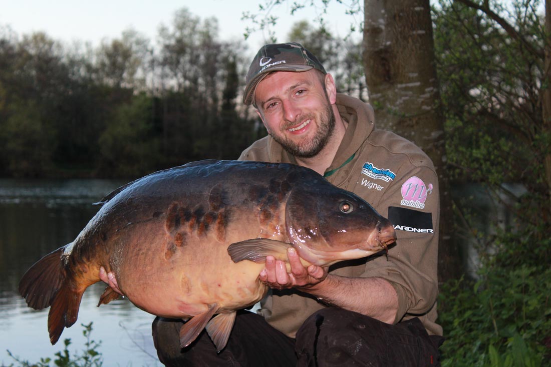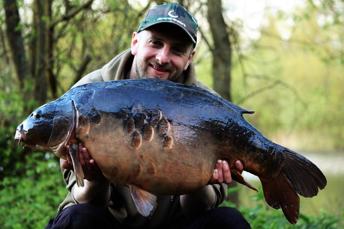 A slow plodding fight ensued, the type where you feel like you’re trying to pull the plug out the lake. After a good 7 or 8 minutes passed I finally got my first sight of what was attached to my hook through the crystal clear water. The scale pattern was unmistakable and I knew they belonged to a fish I’d witnessed and dreamt of catching whilst looking off the famous bridge that separates ‘Kingsmead 1’ and the ‘Island Lake’ nearly 3 years ago. My legs turned to jelly and my hands started to shake as it rolled and flanked below the surface and I literally watched it coming towards me upside down! It looked crazy as it pulled out every trick in the book in a bid for freedom, but alas it’s efforts were in vain as I finally engulfed it in the landing net mesh.