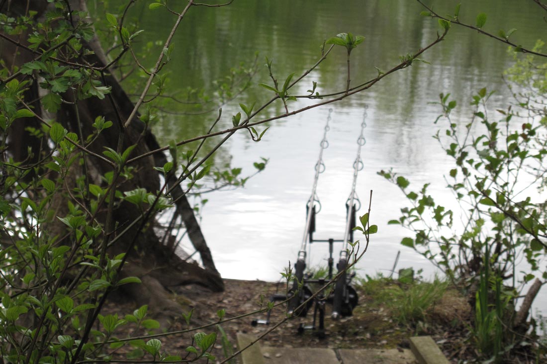 The swim nearest was a small platform that had the main snag tree to its right, and I hadn’t fished it for a while, so wasn’t exactly sure of where to put my baits in there. The last thing I wanted to do was lead around too much with the fish already there. I put the light leads on again, and flicked one just off the tree branches almost at my feet, and the other to the left, taking about 5 casts until I found what I was happy with. The bottom was all pretty clear and fairly soft, but one spot was noticeably harder, and I could feel a dull thud all of the way down the rod butt as the lead hit bottom.