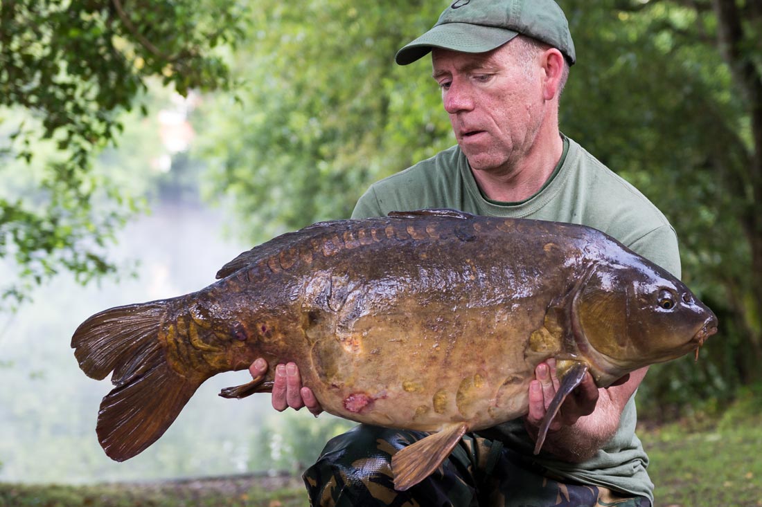 Finally, at 3 in the morning I had a belting take; this was clearly not a Tench and was one angry carp that was trying it’s best to make it up the channel. At one stage it made it around the trees in the margin, but by keeping the pressure on and sinking the rod tip deep down in the margin I managed to coax it back in front of me. Happy days, as another of the Roach Pit originals named the Friendly Mirror rolled into the net at 26lb!