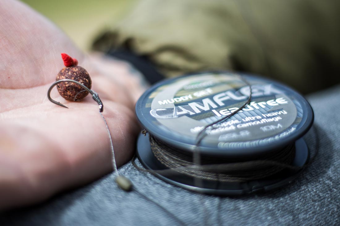 Dat wil natuurlijk niet zeggen dat het niet uitmaakt met wat voor systeem je vist, in tegendeel zelfs; die laatste meters blijven altijd heel belangrijk. Op een nieuw water gaat er altijd veel tijd inzitten om die laatste meters juist te positioneren. Ik kies daarom voor een flink stuk leadcore van ongeveer 2,5 meter lengte. Mijn voorkeur gaat uit naar die van Gardner, want deze zinkt erg goed af en volgt de contouren van de bodem uitstekend. In het geval van deze trip komt dat ook nog eens heel goed van pas, omdat er onder water nogal wat obstakels te verwachten zijn.