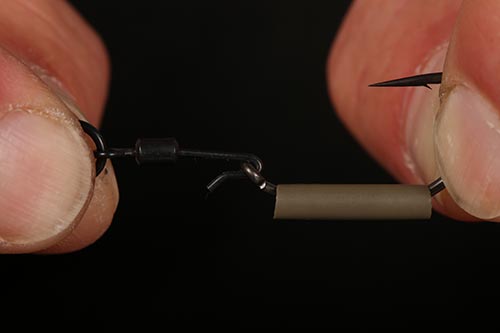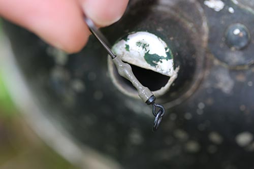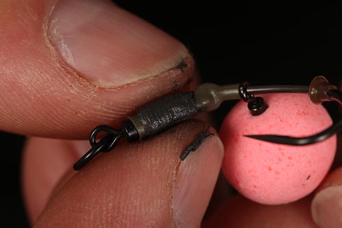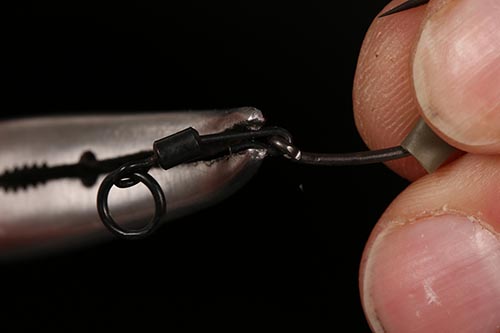 * The size 12 Kwik Lok Flexi-Ring Swivel is not designed specifically for this purpose but does the job perfectly if pulled gently onto the hook eye as straight as possible and then closed up and sleeved with shrink tube (to stop flexing). We recommend customers use “common sense” and test the connection fully on a test rig to gauge final strength.