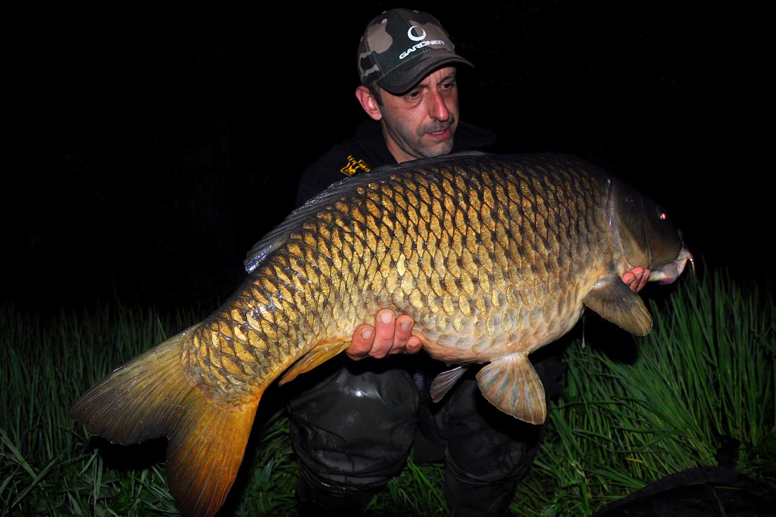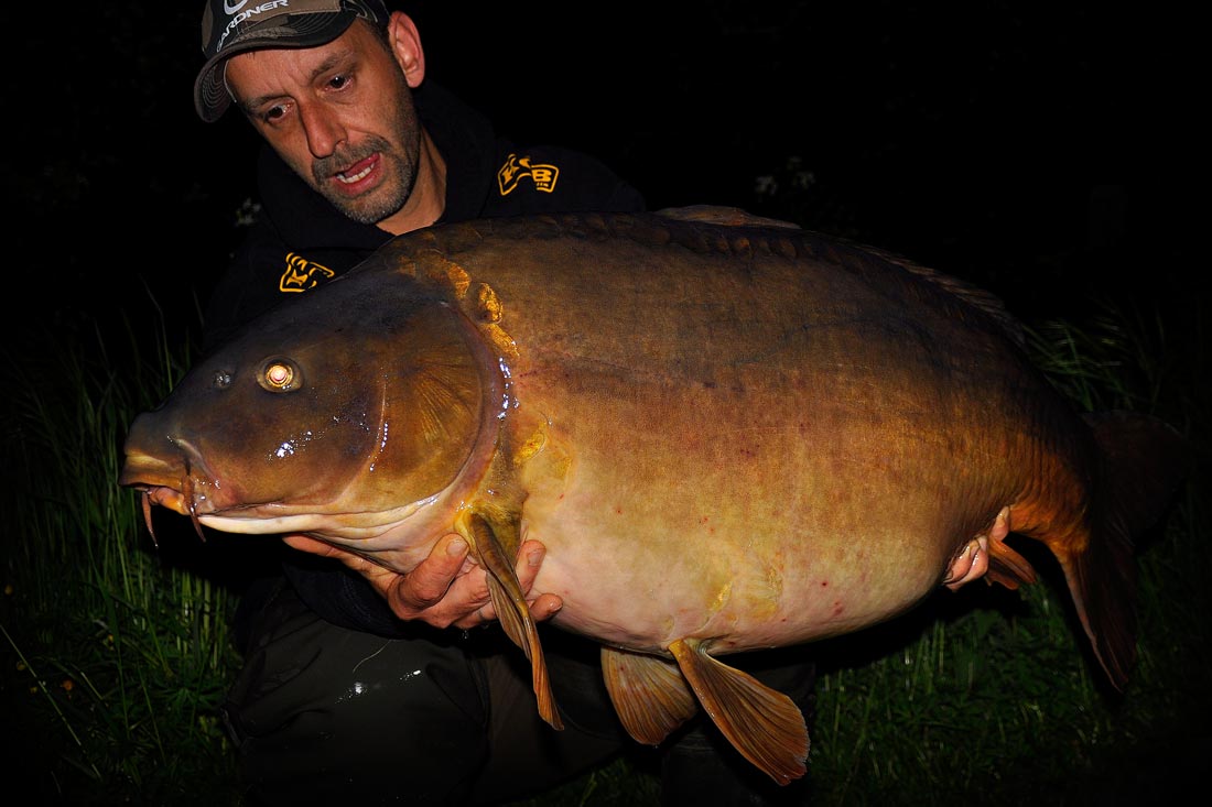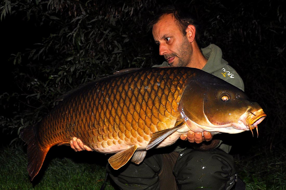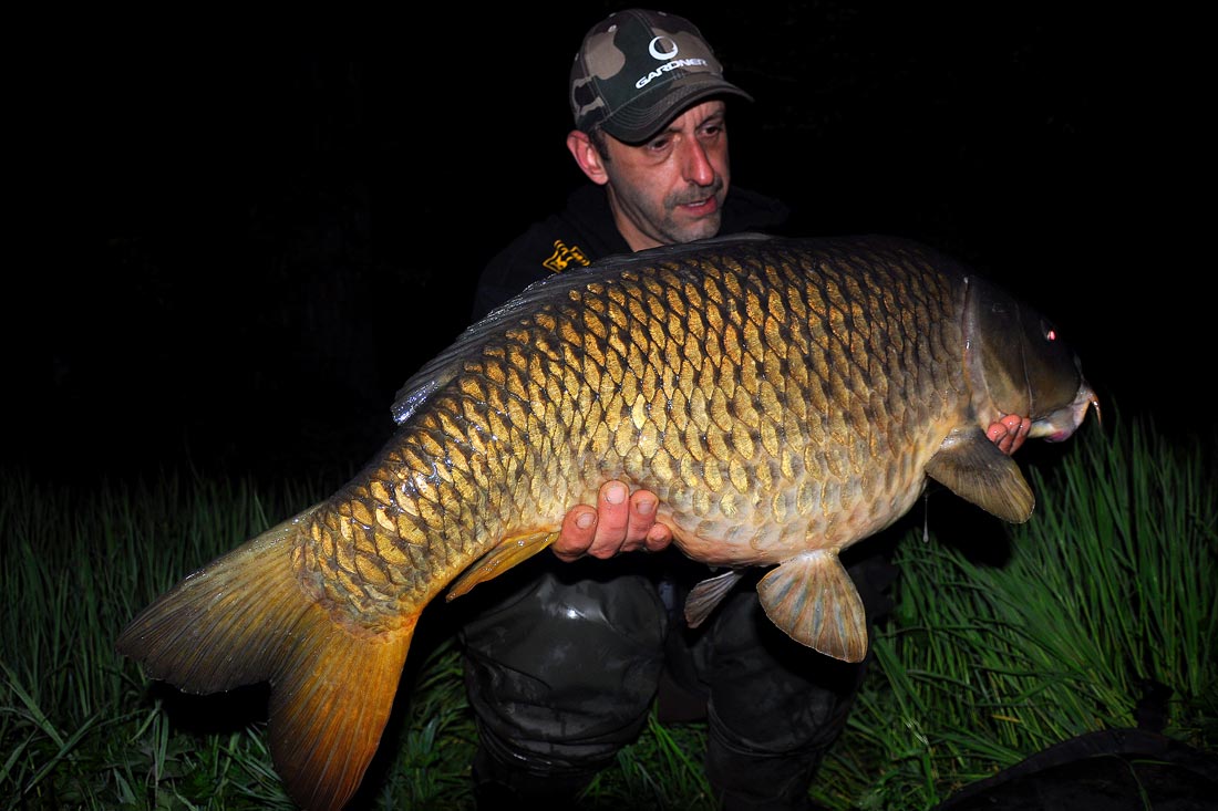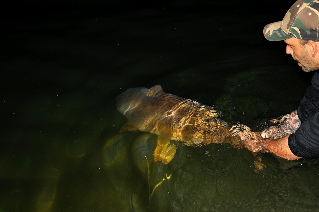 oow ja juist,amper de 2de vis ooit dat ik in de daguren vang hier … ik denk dat deze zijn Rodania stilgevallen was.De avond moest nog beginnen en de eerste had al reeds mijn mat bezocht,het vertrouwen was groot… maar de hengels bleven roerloos liggen,de att’s bleven stil……tot ik, op amper 5minuten tijd, 3 keer een dikke knal hoorde in het water,telkens een 10m van elkaar ,20m verder van mijn spot… 1 ding was zeker ,hier gaat het niet meer over een dertiger………
