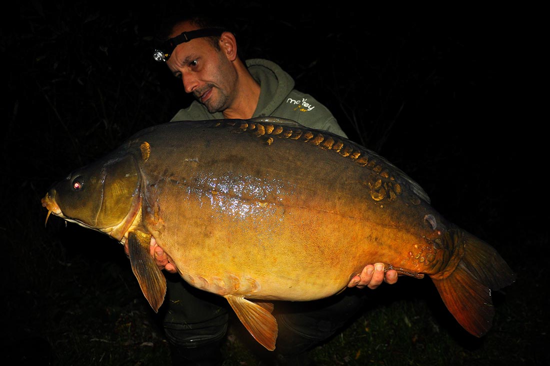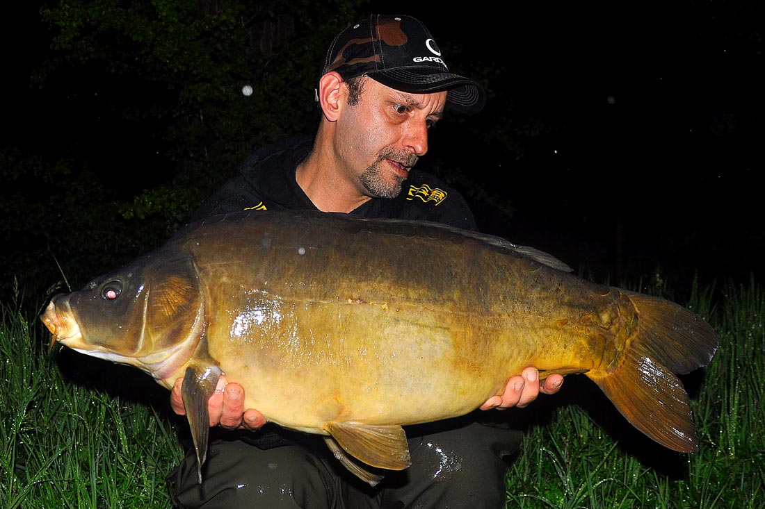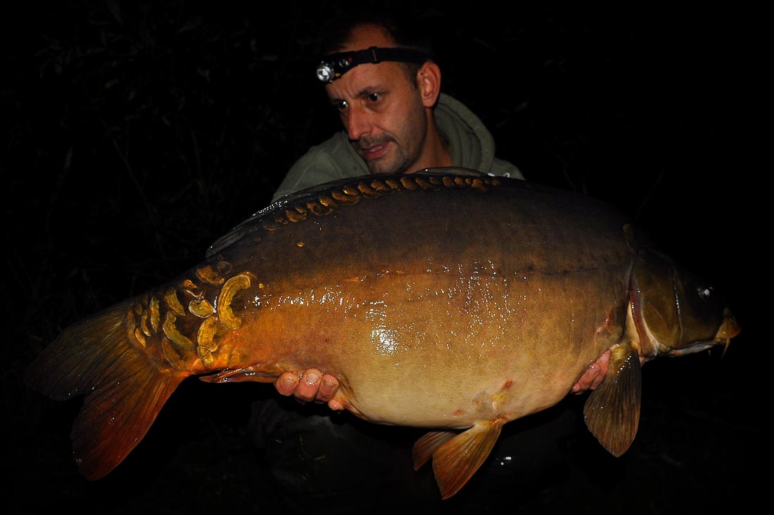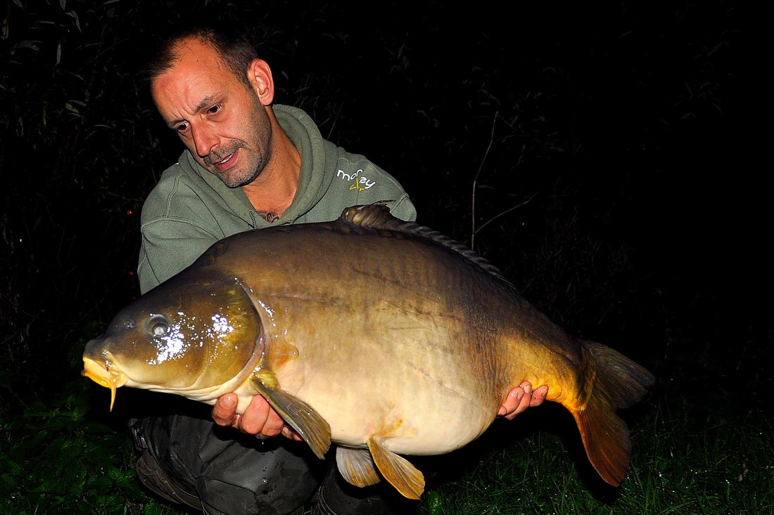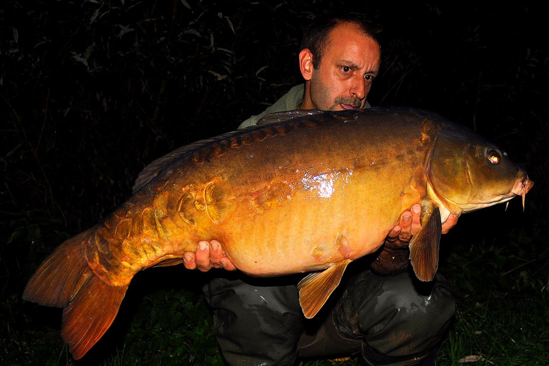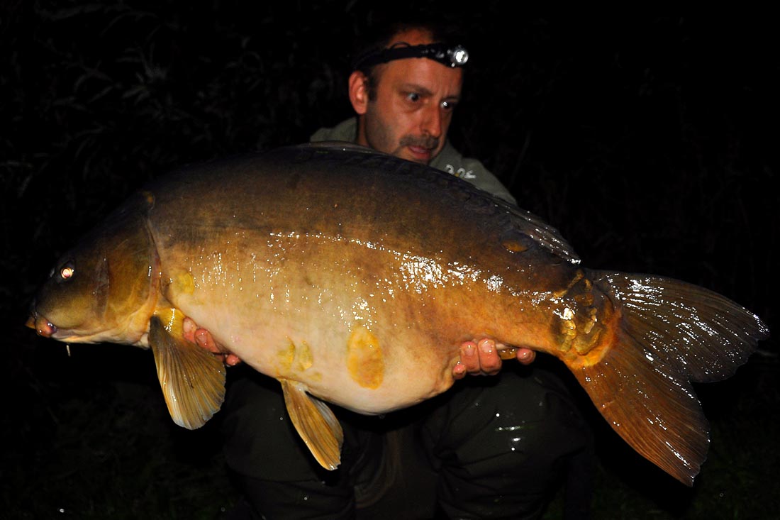 oow ja juist,amper de 2de vis ooit dat ik in de daguren vang hier … ik denk dat deze zijn Rodania stilgevallen was.De avond moest nog beginnen en de eerste had al reeds mijn mat bezocht,het vertrouwen was groot… maar de hengels bleven roerloos liggen,de att’s bleven stil……tot ik, op amper 5minuten tijd, 3 keer een dikke knal hoorde in het water,telkens een 10m van elkaar ,20m verder van mijn spot… 1 ding was zeker ,hier gaat het niet meer over een dertiger………