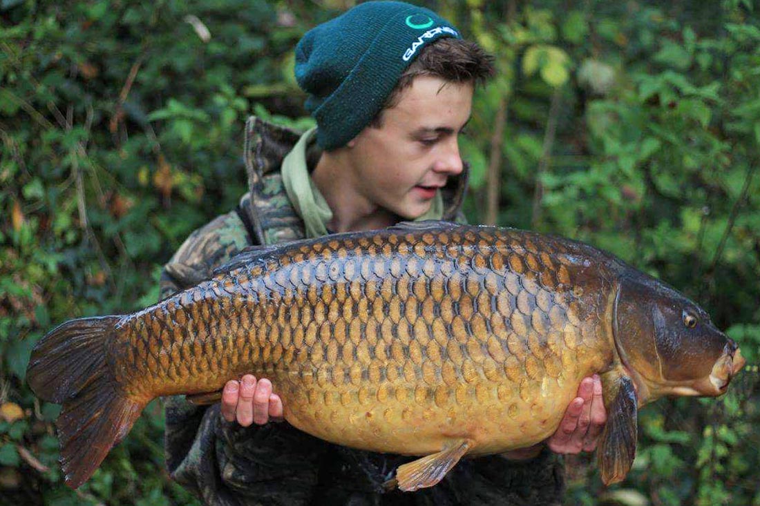 I must have drifted off, as around midnight I was suddenly awoken by a screaming run on my right hand rod. I ran over to it and hit into what felt like a decent fish. It slowly and heavily plodded its way towards the net and after about 8 minutes The Golden Common was in the back of my net!
