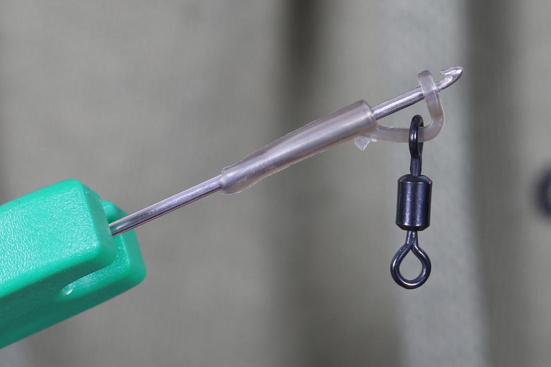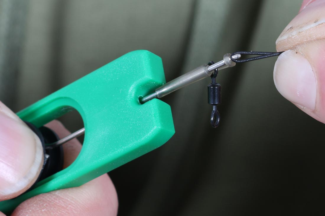 1. Mount a size 12 swivel onto a Pop Up Hook Aligner (large Hook aligner for size 6 hooks as shown).