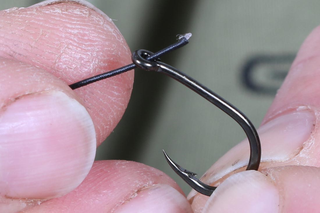4. With the Knotless knot always have the hooklink coming through the eye towards the hook point (as shown).