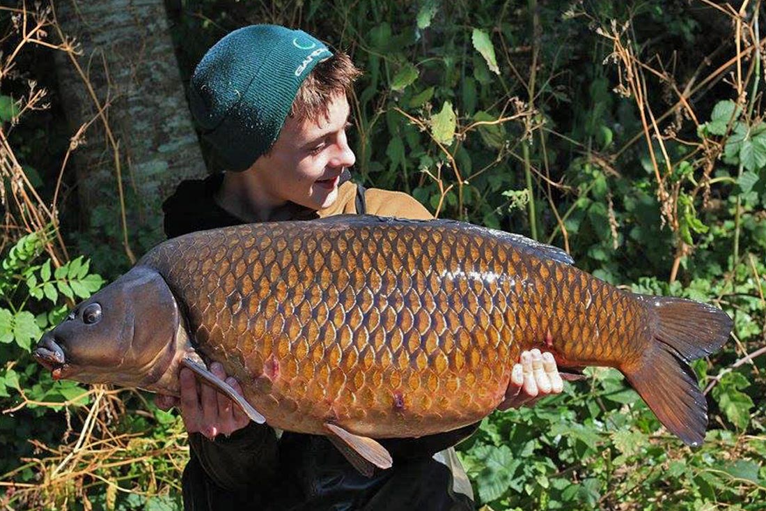 Later that afternoon, at around 6pm, I topped up the swim, putting out the same amount as I did the day before and also reeled in my rods to re-bait them. As I was doing my last rod a couple of decent fish were jumping out about 20 yards out so I quickly got a rod in the zone and 30 minutes later I was into an angry little mirror which weighed 15lb 12oz. An hour or so later, just as it was getting dark, I had a weird indication coming from my left hand rod. I watched for a couple of minutes before striking into this sneaky common which had kited out of the left hand bay. After a great fight the beast was in the net and it looked huge! I was excited to see the weight so I got everything ready and my mate came round to take some photos. When it was on the mat we recognised that it was a common called ‘The Immaculate’! I was so buzzing to have enjoyed such a great couple of hours and to have this beast on my mat. It went 39lb 8oz on the scales – which beat my old PB common by just over a pound. The rest of the session was quiet and early next morning I left over the moon with catching ‘The Immaculate’. What a fish!