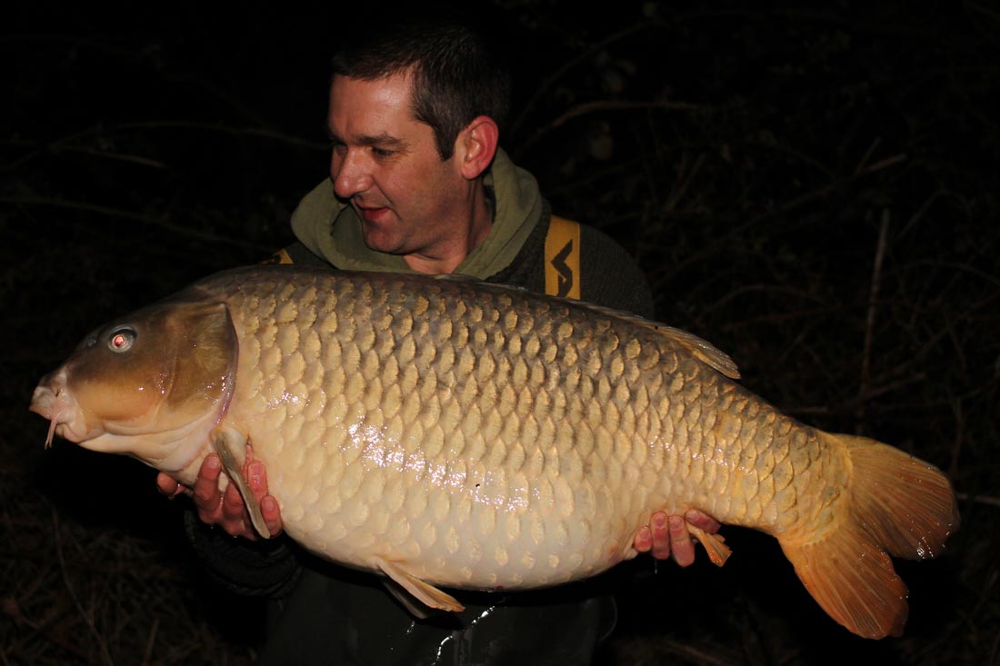 Once I got my mate Disco Dave Gaskin (aka The Goose Point Impregnator) round to help, we identified her as the Long Ghostie. I think the bulked up shape confused us both for a little while as she looked far chunkier on the bank than normal; and when I hoisted her up on the scales to find the needle settle on 53lb I was left in a state of shock! Once again I rightfully got ribbed by Dave as I really should know this one as this was my third capture of the mega looking beast (the best Ghostie in the lake in my eyes).