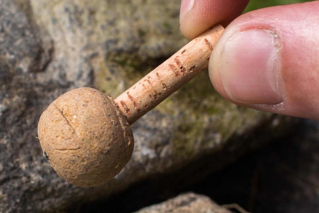 Haakaas balanceren, als ik op een voor gevoerde stek vis gebruik ik nooit geen fel gekleurde pop ups of fake/imitatie aas. Ik gebruik altijd het zelfde voer als het voer wat ik voer. Voer ik 18mm trigga bollies gebruik ik als haakaas een 18mm trigga bollie alleen komt er nog wat extras bij kijken, ik boor het haakaas uit met een 8mm boortje en voorzie het dan van een flink stuk kurk ik wil wel dat mijn bollie altijd op de bodem gaat liggen omdat alles wat ik voer ook op de bodem ligt. Ik voorzie mijn haakaas van kurk omdat ik wil weten wat de bovenkant van mijn haakaas is onder water doordat ik weet wat de boven kant is weet ik ook wat de onderkant word en kan ik zo het juiste vertrek punt van de hair kiezen hierdoor kan ik de bollie nog korter op de haak vissen en heeft de vis geen mogelijkheid om zijn lippen te sluiten achter mij haakaas hij heeft dan altijd al mijn haak tever naar binnen geslurpt en zal direct prikken. Ook maakt de kurk de bollie lichter dit komt goed overeen met het gewicht van de haak en zo kan de vis nooit merken dat hij meer oppakt dan alleen een bollie.