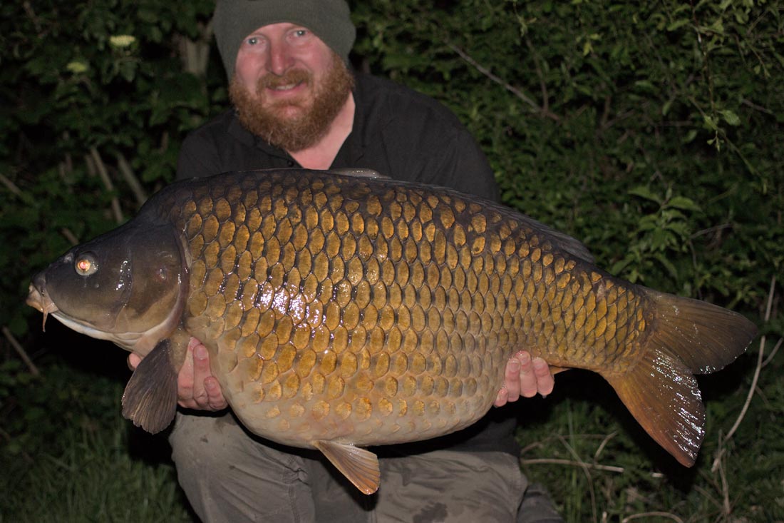 I was hopeful of a quick bite as I had seen fish in the area, but unfortunately I had to wait around 36 hours before I had any action. At around midnight on the second night, I had a slow twitchy drop back, which was promptly struck. As soon as I hooked it, my first thought was it was only a small fish and it felt like a low double all the way in, until it suddenly woke up under the rod tip and decided to pull back a bit and turn into a heavy plodding lump. After a further 10 minutes of lumbering about under the rod tip, I finally slipped the net under a lovely chunky new PB common, which tipped the scales at 45lb. After the obligatory pics, she was soon back in her home. It was then about another 36 hour wait before I had my second fish, this time a lovely plump 32lb 12oz mirror that actually felt like a 30lber during the fight. This was soon followed by another mirror of 27lb.