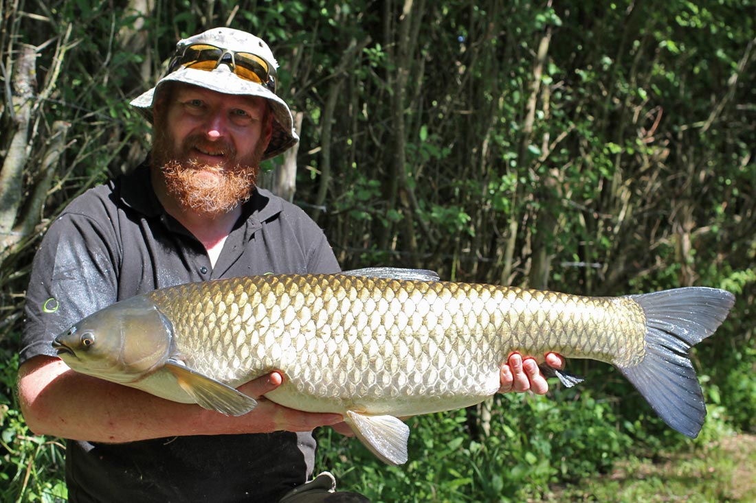 I lowered the hookbait straight down onto ones nose just feet from the bank as it slowly cruised by and it instantly tilted up and sucked in the hookbait and all hell broke loose. Grass carp always scrap well and they never fail to surprise me just how powerful they are when you hook them under the rod tip. After about 30 minutes and one of the most powerful battles I’ve had from a fish in years, I finally managed (at about the sixth attempt) to net her. Letting the fish rest in the net to get her breath back (and mine) I called Carl who kindly nipped round for the weighing and photographing. It wasn’t quite the 30lb I had estimated, but I was pleased with a weight of 29lb. After slipping her back, I returned to my swim and put the main rods back out again for the night.