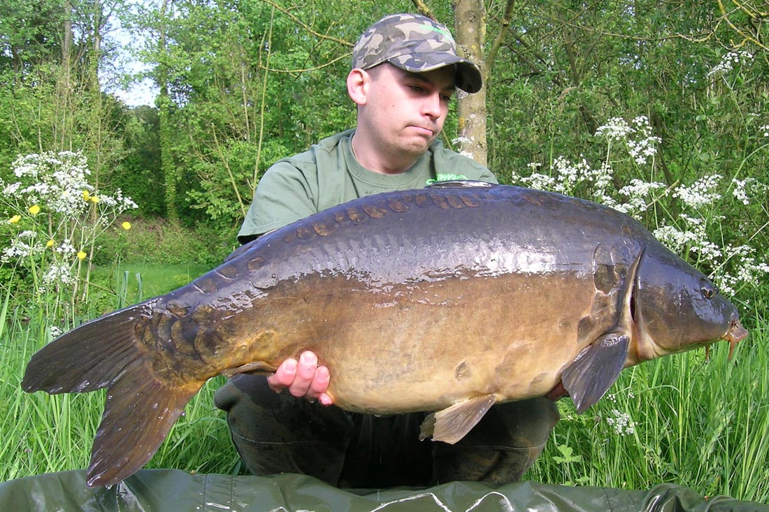 Nadat er enkele uren waren verstreken kreeg ik 2 beepjes op mijn rechterhengel, deze die ik in de kant had geplaatst. Na het eerste contact voelde ik een loge beweging, maar eenmaal onder de top barst er een hevig gevecht uit die meer dan 10 minuten duurt. Eenmaal over de netkoord kan ik mijn ogen niet geloven! Het is een mooie oude spiegel die de unster laat doorzakken tot ruim over de 30 pond. En dit als eerste vis van het jaar!