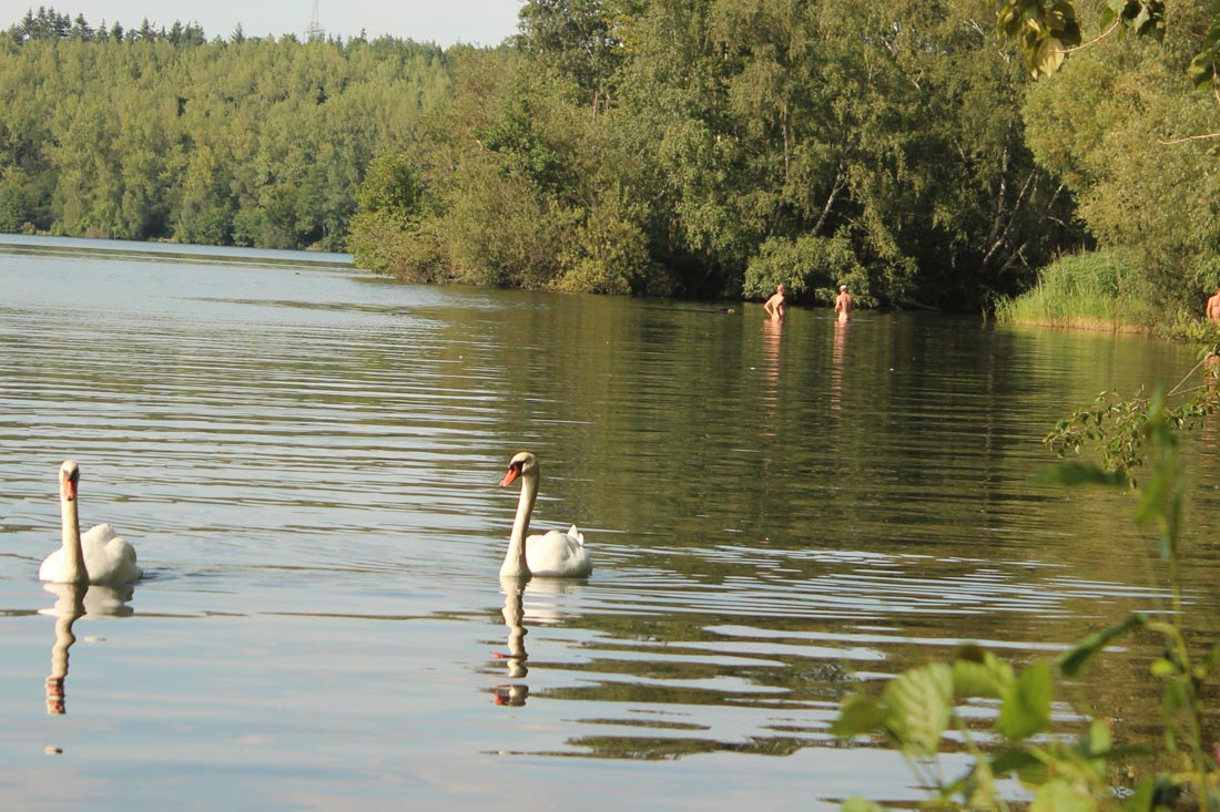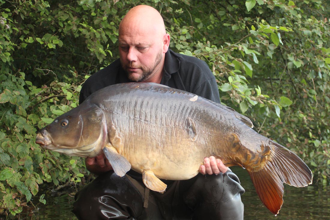 Kortelings overkwam mij eigenlijk weer hetzelfde stramien, maar deze keer bewust uitgelokt door mezelf. Sedert een paar jaar bevis ik een groot water op regelmatige basis, en dit met ups en downs, soms zit alles mee en vang je echt een partij dertigers en soms een veertigers, de volgende sessie kan het gewoon weer dood en stil zijn. De grote van het water speelt hier natuurlijk zijn rol in en observeren en hopen dat de vissen wat gegroepeerd zitten is er vaak de sleutel tot succes. Aangezien het echt een groot water betreft, zijn de puzzelstukjes niet altijd makkelijk te leggen en is het vaak trial and error, maar stilaan komen we er wel, en laten we nu eerlijk zijn met onszelf, de voorbereiding en het denkwerk naar een vangst heeft toch evenveel voldoening als de vangst zelf, of niet soms. Dit jaar werd bewust gekozen voor een ander deel van het water, waar het in essentie zeer rustig is (lees moeilijk toegankelijk voor de luie visser), echter had dit deel van het water nog een aangename verassing voor mij….de stek die ik bevis beschikt over een “illegaal” zwemstrandje het welke op zonnige dagen bevolkt wordt door de “alternatieve” jeugd, die het vertikt om het “legaal” strand op te zoeken. In het begin moet ik eerlijk bekennen dat ik er mij wat aan ergerde, ik was namelijk in de “bosjes” afgedaald om rust te vinden en bewust weg te blijven uit de buurt van de waterrecreanten want daarvan zijn er massa’s op de bewuste put, en dan merk je plotseling op een zonnige dag op dat er ook een tiental naaktzwemmers op je stek dobberen. Maar wie ben ik om iemand te beoordelen die eigenlijk in essentie hetzelfde doet als mij……de kudde ontvluchten….we lopen hier maar even rond op deze aardkloot en we moeten al genoeg in het stramien lopen, dus doe lekker je zin, maar altijd met wederzijds respect, als de naaktzwemmers zin hebben om te dobberen, dan vis ik wel iets verder en dieper. Natuurlijk had ik de oeverzone al eens verkent waar de pootjes baders zich tegoed deden aan het frisse water, echter was ze zeer ondiep en liepen bomen en struiken op sommige plaatsen ver in het water. Ik liet de overzone dus eigenlijk wat links liggen en viste wat in dieper water. Echter hoe meer ik focuste op deze zone hoe meer ik ook eigenlijk vis opmerkte, vooral in de avond uren en de vroege ochtend hoorde ik er vis springen, in het begin dacht ik dat het watervogels waren of een snoek die aan de oppervlakte jaagde, maar nadere observatie ter plaatse leerde mij dat het echt wal karper betrof. Het verhaal herhaalde zich…..zwemmers trekken karpers aan, en zeker nog eens extra als daar zelden of nooit “lijnen” in het water gaan. Wat mij betrof was het zo duidelijk als een klontje en al zeker nadat een vriend (P.H.) die er voor mij zou gaan voeren op de afstand stek er een nachtje aanplakte en direct resultaat had. De volgende sessie zou ik mij voorbereiden om vol in het zwemgebied te vissen.
