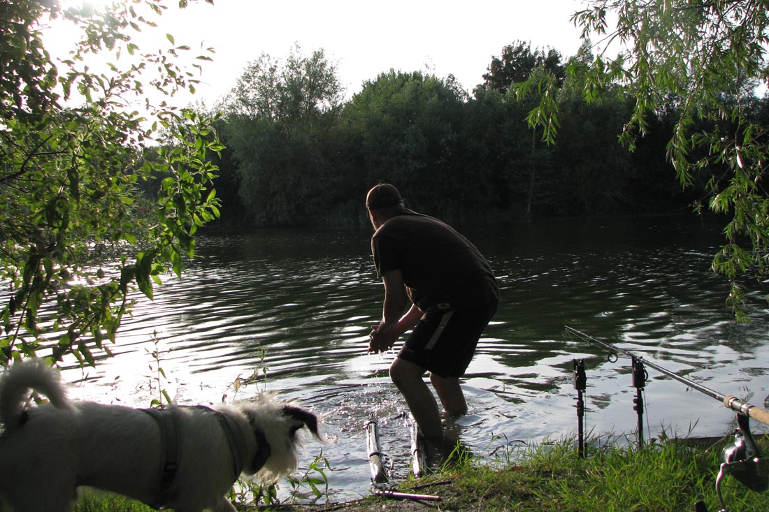 Wandering round, to top the spot up and check the margins in the area, I stumbled across a couple of fish tight in the marginal reeds, which were as startled as I was. I almost trod on them they were that close. With the task done, it was down to hitting the clips once again and getting into the onerous evening tasks such as eating dinner and drinking tea. Rebecca was on her way over to spend a couple of hours before darkness with me, and to bring The Fonz (our famous fishing dog!) as he loves it over there.