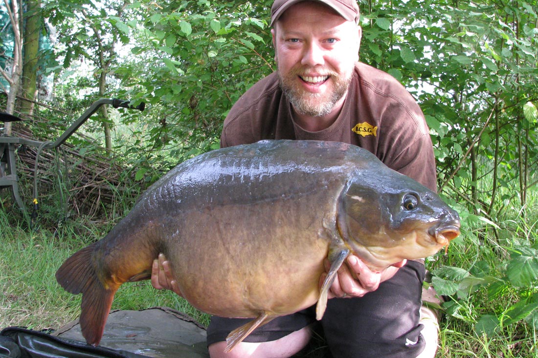 Once again, the fin check, mat, unhook and into the sling ritual was performed and once again the photographic equipment was assembled. This time the dial went round to 38lb 10oz, which equalled my personal best that had been set over 10 years previously over on the Kingsmead Island Lake. For some reason that 40lb carp barrier has eluded me over the years, not that it matters to me at all, but some people are interested in the numbers. After a couple of returner shots it was soon swimming strongly into the deep margins and out of sight. Success did indeed taste sweet, and the tea went down all the smoother that evening as I was once again left to wallow in my new found state of carpyness, so all was good with the world.