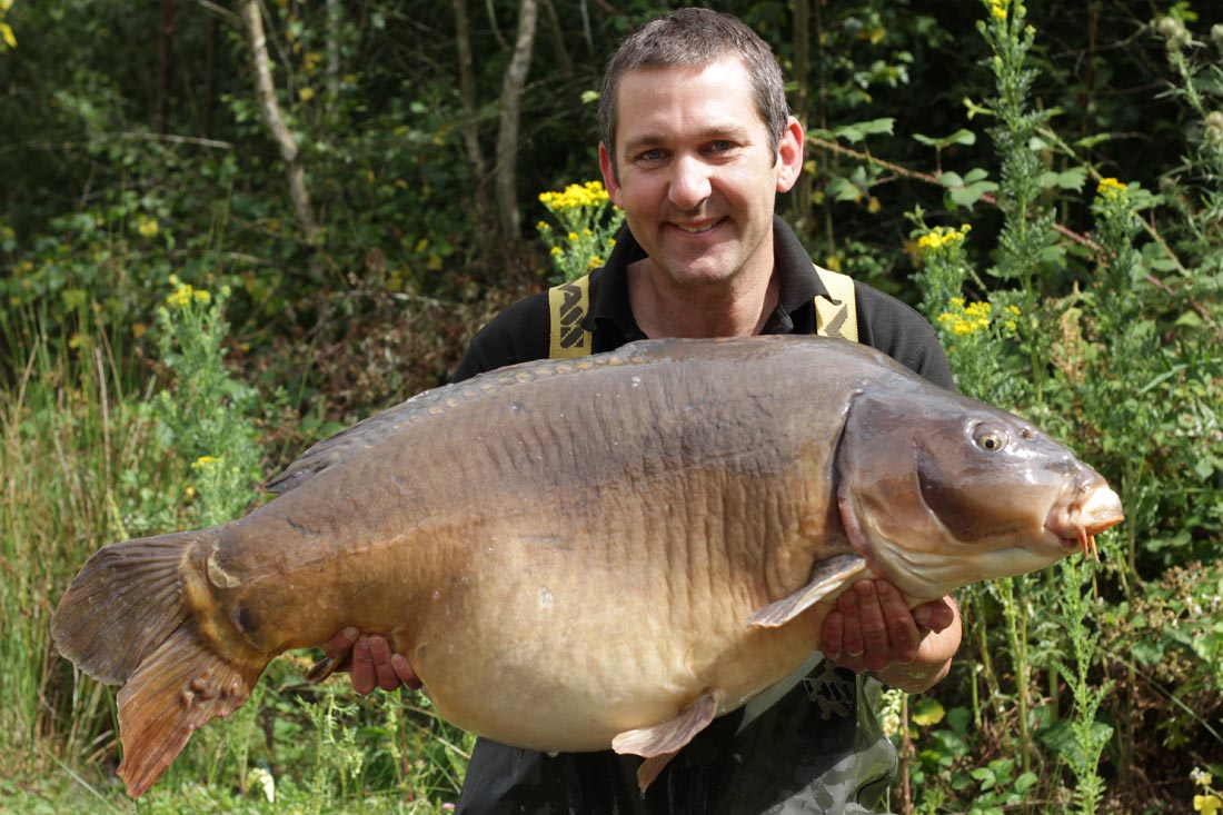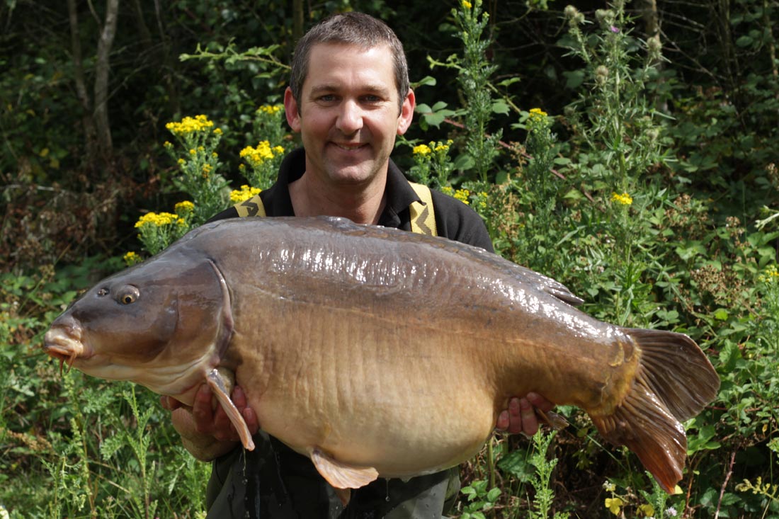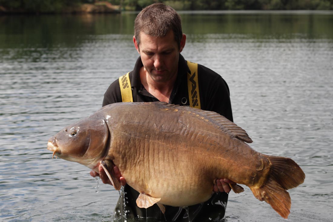 Right from the off I thought it felt different. I’ve had a few repeats and caught a fair few carp from the awesome lake over the last few years, and this one moved so slowly that I was already hopeful it would be a ‘new one’. It was a case of gently leading her in, but when she hit the bottom of the marginal slope she would head off again on slow unstoppable (short) runs keeping her head on the lake bed and sending up deep oily tail patterns as it used its weight to hold its ground.