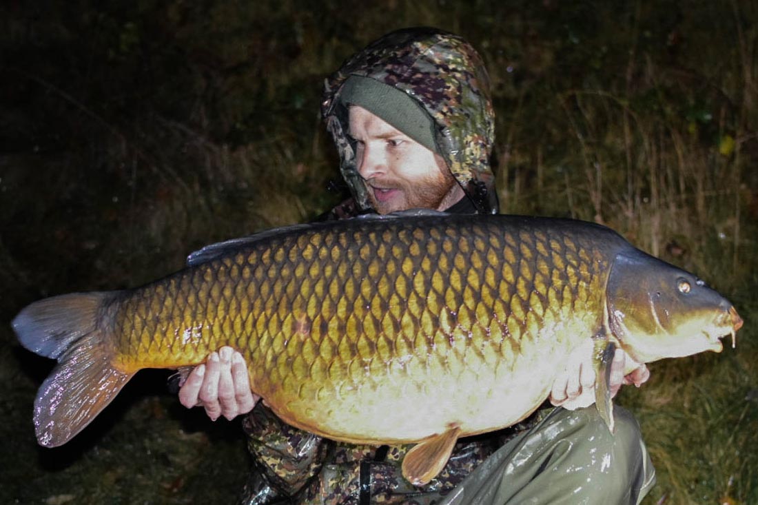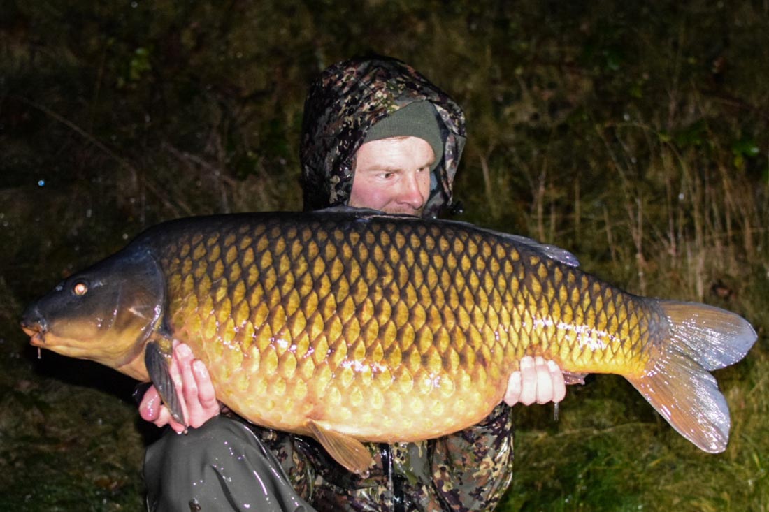 With a half 5 pack up for work first thing in the morning, I got my head down early. I was woken by my middle rod peeling off at half 3 in the morning. It was lashing it down and after an epic battle with no wet weathers on, I was absolutely soaked but chuffed to bits when a massive common rolled into the net! After a quick glance, I knew it had to be the “Long Common”, one I’ve wanted from the day of joining and the last big common I needed from the syndicate. The scales bounced round to 40lb 4oz and I was over the moon. With the wind so strong and the weed drifting by like traffic, the next hour was a battle itself trying to get the rod spot on, I could hear the fish constantly crashing out. The rod was back on the zone after a few attempts and many bags tied up.
