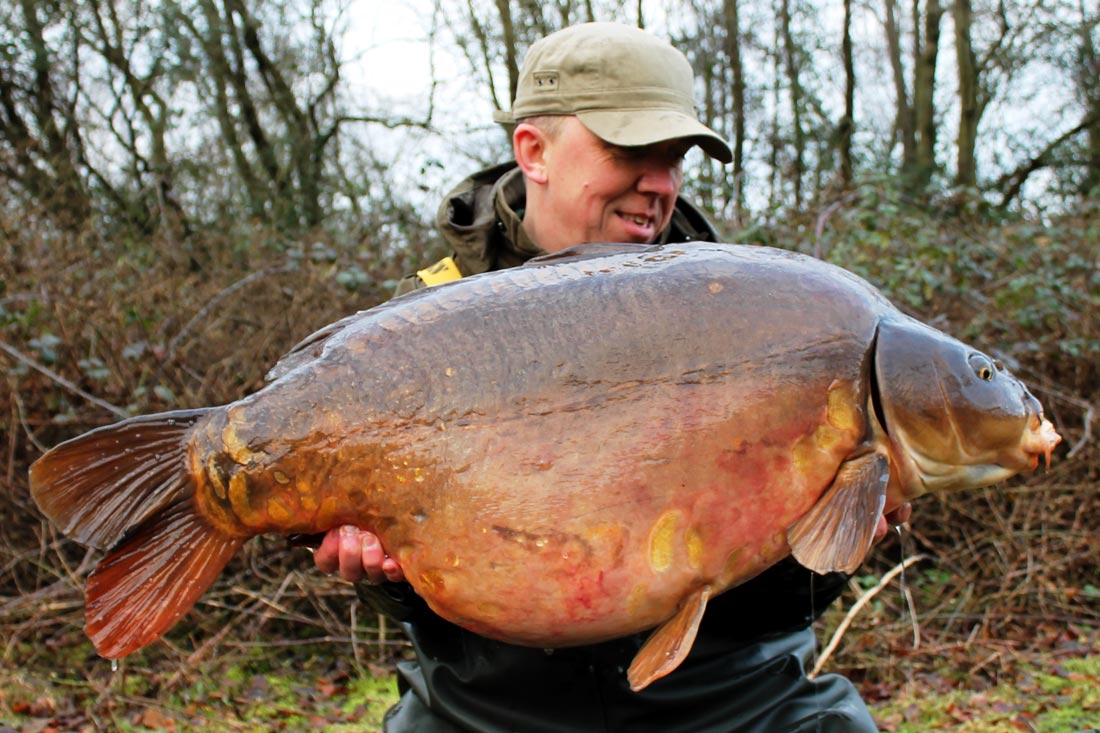 If that wasn’t enough, the same rod that I’d recast to the same area (with a lighter lead to cause less disruption) was away again at 10 in the morning. WTF! Another typical short heavy wintery battle had my nerves jangling and I was soon staring down into the landing net at a new PB common, in the epic shape of Clint’s Common at 47lb!