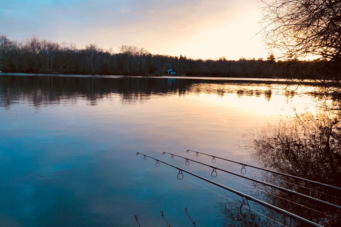 With less than an hour until sunset, I made an immediate push with the barrow to the most recently productive end of the lake. With the sun already dropping out of sight, I settled quickly into the 3 trees swim which offered some protection from the bitterly cold North Easterly breeze, and also offered a wonderful panoramic view of the lake.