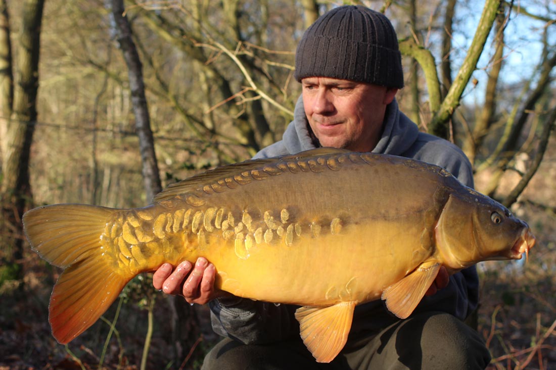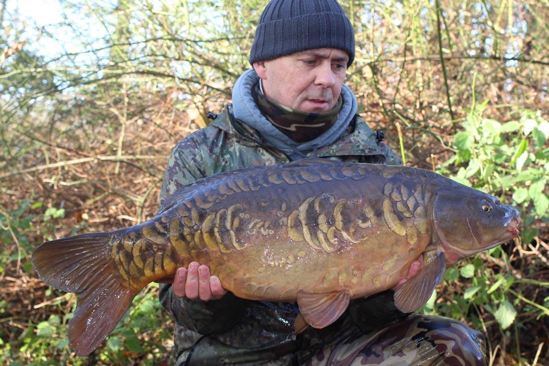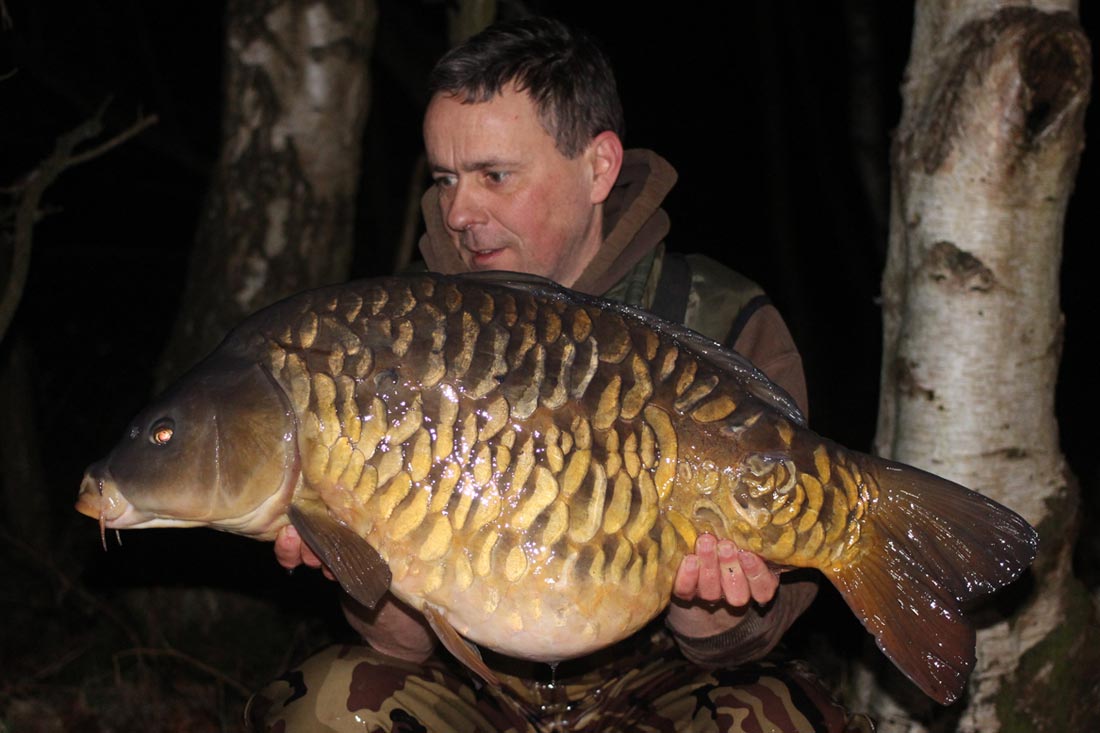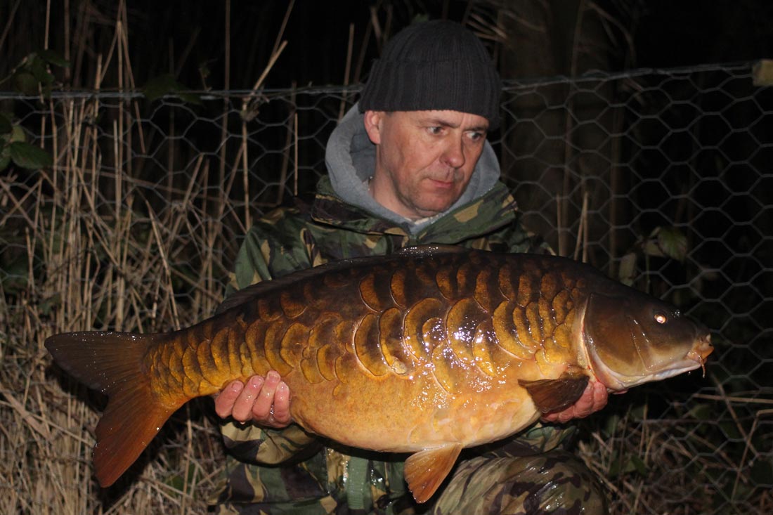 Well they say a change is as good as the rest and my first night of the year in the famous ‘Double Boards’ saw me land a lovely fully scaled of just over 30lbs and an upper 20lb common. The funny thing about this fully and all the other mirrors I’d caught this winter was that they were all new ones for me, which is saying something as I’ve caught a lot of the Pit 3 residents over the years and basically there’s only a small handful of the bigger fish (A-team) left for me to catch.