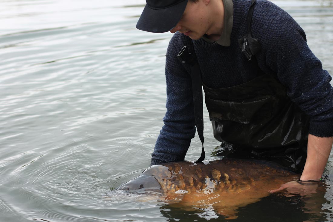 I got my head down and woke up the next morning to motionless rods. There was a couple of fish mooching around on the top already and also a few boshing in front of the swim opposite me. I got up and took a look in the swim next to me to see if I could see anything in the corner. My mate was in there trying to nab one off of the surface and he said to me that bite time has been quite early recently. This had made me think that I had misssed my chance for the day, but it also still looked promising as it very overcast and not too hot. I walked back to my swim to find the tuffties were diving on my baited spot. As they were diving the bobbin on my middle rod lifted and pulled steadily up to my bite alarm. I quickly ran over and thought I must have hooked a tuffty, so I picked up the rod to reel it in. As soon as I lifted into it I had found that there was a very angry fish on the end and it immediately started to strip line.