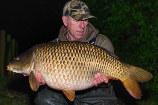Two more Tench through the night and another that dropped off in the morning meant I was shattered and desperately needed some sleep! I’d just dropped off when the left-hand rod absolutely melted off, racing through a couple of large weedbeds then kiting left towards a snaggy bay. This fish was really powerful and repeatedly stripped line and kept heading deeper under the snaggy tree line. Keeping the rod tip deep in the water I gradually coaxed it back and finally a huge common appeared under the trees and continued to scrap in the margins under my rod tips. I was blown away by the length and colour of the fish, known as “The Classic Common”. It looked stunning in the early morning light and looked so impressive filling the mat.