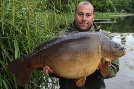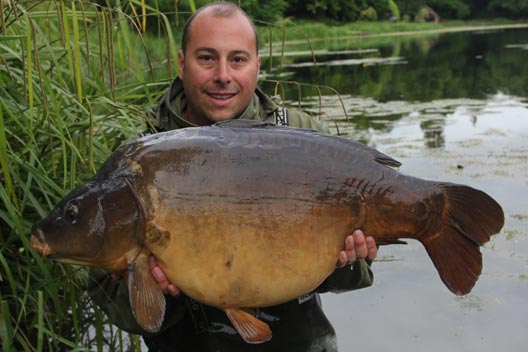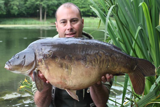 At around 8.30 I noticed Wayne was down at the boathouse talking to Chris, so I strolled down and asked if he could do some pictures. Wayne asked what I had caught and I cheerily said a mirror, nearer 35 than 30. With that both Wayne and Chris made their way up to my swim and we had a brew while I got everything sorted. I lifted the fish onto the mat out in the water and they hoisted her up. The scales span round to 41lb 6oz! I was in shock; I didn’t think at any point that I had captured a 40lber. We took some water shots and let a carp known as ‘No Name’ swim off between the weed, back into its watery home.