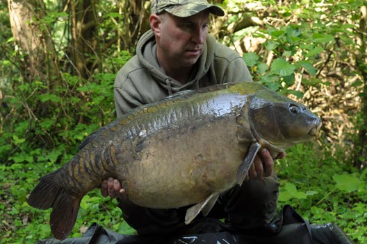 As was quite common with this lake, it could look absolutely spot on, but you wouldn’t get a sign that you were actually getting close to getting a bite. The same thing applied the following morning, until, out of nowhere at 8:30 my middle rod, which was the one on the soft silt, was away with a one noter. This time I was pretty much in control of the fish all the way in, until I somewhat cack-handily muscled the fish into the awaiting net at full stretch due to the high marginal step in the swim. Exhaling a sigh of relief, I looked into the net and shouted at Terry that I wasn’t sure what it was, but that it was a decent fish. Only when I laid it on the mat did I realise that it was indeed the Half Lin! With the scales steadied on my shiny new (rarely used) Gardner weigh bar, there was no getting away from its official weight being 39.15!