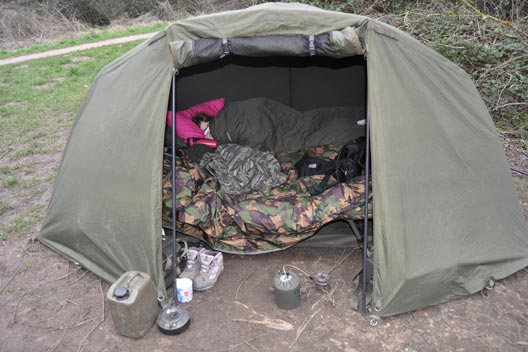 Utilising the same approach as before, I fanned 3 rods into the deeper areas of the swim, not too far out with the hookbaits set over 7 foot off the bottom. Livvy was content with her iPad, oblivious to the rain and my constant cursing of the overwrap for allowing the heavy rain to enter with such ease! By 9PM, she was sound asleep but was quickly woken up to some commotion signalled by the loud ATT sounder, which had me doing battle. With the weather as it was it felt like trying to fight a fish in a severe current! Thankfully, the two other rods weren’t wiped out and I coaxed a 25lb common into the awaiting net! I couldn’t believe my luck as the conditions were horrendous – but 2 fish over 2 nights was good enough for me!