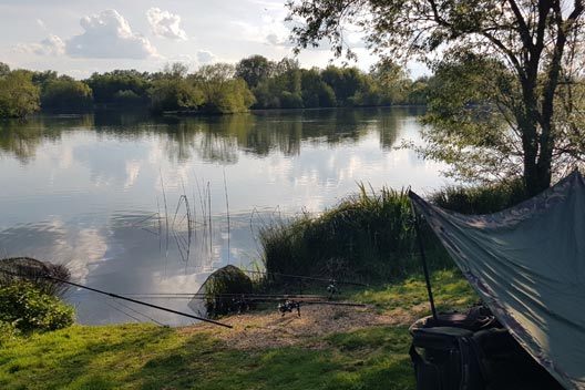 Arriving at the fishery on May Day Bank Holiday possibly wasn’t the wisest move, and 3 hours of walking and looking commenced before a suitable swim was found. It was soon apparent that the swim I had chosen was thick with weed, from the near margin right the way across to the far bank, finding a clear spot big enough to present 2 rods was proving difficult. I wasn’t far from giving up (not taking a weed rake was definitely a rookie mistake) when I cast a little further right and got the unmistakable tap tap tap of gravel straight away! Game on.