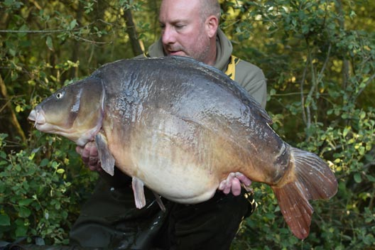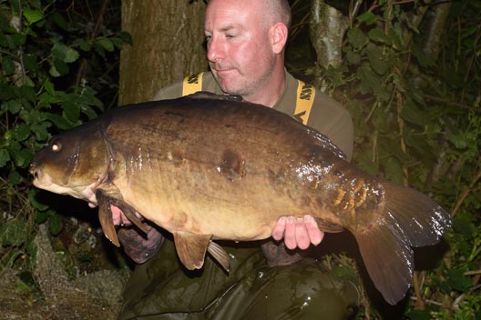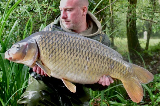 I continued to plug away at Welly for the rest of the month and I managed to catch a handful more. Two sessions really stood out and the first was a mid-week 24 hour trip. I got rained off from work so I made my way down to the lake and after settling into my swim all three rods went out first time of asking (I love it when it goes like that). At midday one of the rods pulled up tight and during the middle of a seriously long hard scrap, unbelievably the right hand rod ripped off! As the carnage unfolded Dean Fletcher walked into the swim and lent a hand. As I netted the first I passed Dean the net and he transferred the fish into a retainer. I picked up the other rod and did the business with what we both believed it to be a really big common based on the amount of water it was moving. Playing two carp back to back did me up like a right kipper – the joys of getting old eh? The pouring rain didn’t help matters and I got soaked to the bone, but it was well worth it with a brace of carp weighing 31lb 14oz and 30lb 8oz. A big thanks to Dean for hanging around in the pouring rain and helping me out. I’m sure I’ll repay the favour soon.