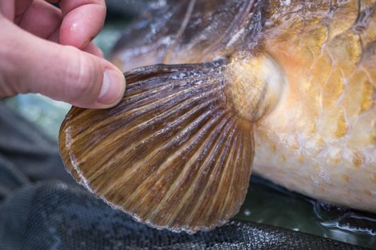 Het voorjaar komt opgang en telkens blijf ik naar het water gaan ik blijf mijn stek goed onderhouden en hoop zo de vissen op het voer te kunnen houden. Met regelmaat breng ik de hoeveelheid omhoog maar de dagen voor dat ik ga vissen breng ik de hoeveelheid weer naar beneden hiermee laat ik de vissen steeds hongeriger de stek benaderen en zo weet ik zeker dat ik tijdens het vissen niet te veel kan voeren. Het blijkt dan ook dat de vissen goed op het voer zitten want bij de eerste dubbel vangst van de big schub blijft hij maar de big fish mix achter laten tijdens het maken van de foto’s loopt het opgegeten voer er dan ook nog uit. Ik kies er dan ook voor om de hoeveelheid voer tijdens het vissen flink omhoog te halen en probeer zo weer door te gaan voor een van de betere vissen. Ook moet ik rekening houden met de paai de vissen beginnen dadelijk nog aan een flinke maaltijd voor dat het jaarlijks ritueel gaat beginnen. Ik kies er dan ook voor om in een korte tijd zoveel mogelijk aan het water te zijn, de ochtend sessies worden dan ook dag sessies en zo weet ik met regelmaat vis in het net te krijgen de voldoening is groot en elke dril is spectaculair de vissen zijn gruwelijk sterk en geven telkens al hun krachten door grote vinnen en een flinke start maakt dan uit duidelijk waar deze kracht vandaan komt. Ook moet ik nu inspelen op anderen vissers zullen deze mannen voeren of komen zo maar af en toe instant hun graantje mee pikken? Het is duidelijk dat er een aantal vissers meer op de hoogte zijn van de parels die hier leven. Vol gas blijf ik gaan en zo komt de paai steeds dichter bij dat blijkt dan ook te kloppen als ik tijdens het vangen van een oude karakter spiegel niet alleen mijn big fish mix zie verschijnen op de mat maar ook wat hom er te voor schijn komt.