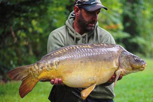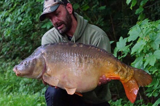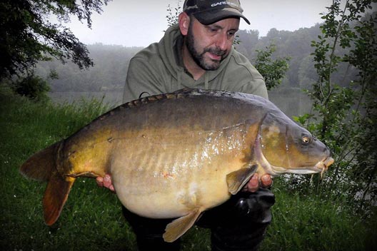 Ondertussen had er zich een jong koppeltjes genesteld een 10tal meter verwijderd van mijn stek.Mijn god daar werd verdomd wat afgelebbert! Als dit 1 karper ziet ben ik gesjost en vallen die meteen in de paai. Een contract van Eddy lipstick lag ze zo maar voor het grijpen. Alskeurige huisvader en karpervisser kon en mocht ik deze niet aanstaren… alhoewel in 1 ooghoek is toegestaan, het andere oog zal mijn hengels wel scherp in de gaten houden… en maar goed ook! ruuuuuuuuuun Forest ruuuuuun. We zijn weer aan de bak! Terwijl ik deze vis aan het drillen ben barst er een ware onweer los. Het giet pijpenstelen… Gelukkig nam de vis zijn runnetjes direct naar de kant toe en kon ik deze schub vrij snel scheppen. Het koppeltje was noodgedwongen gaan schuilen, te laat zo te zien want hun hartstochtige vurige taferelen waren vrij vlug afgekoeld, bij de meid ben ik zeker dat de enige droge plekken van 10 min voordien alsook doorsopt waren… welliswaar door de regen deze keer…