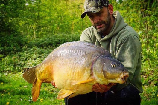 Wankelend op een dunne tak…14 ogen op mij gericht en 7 monden die meer oei en ai zegden die mij lief was… het zweet liep mijn kroonjuwelen af… 20 minuten brijwerk heb ik al nodig gehad en daarbovenop een slippertje van de tak waardoor mijn lieslaarzen volliepen… Natuurlijk tot net iets hoger als de plaats waar mijn iphone in mijn broekzak zat… maar ik had hem verlost! Als ware messias klom ik terug op het vaste land… ten einde van adem kon ik hem op de mat leggen en de eerste keer aanschouwen. Wat een brute spiegel! Mijn toeschouwende 7 apostelen warenminstens even verbaast als ik. Zij hadden nml nog nooit een karper met die omvang gezien. 1 welopgevoede dienaar dringt zich op als fotograaf… toegestaan mijn zoon! Nadat deze spiegel de eucharistie gekregen had onder de vorm van een paar foto’s kon hij weer in vrede rondzwemmen. ooow mijn lieve god wt een zalig gevoel…