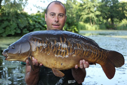 August arrived and I was owed some time back from work that I had done earlier in the year. I decided to take Friday 1st off heading down to Milton on the Thursday night. I fished for three nights and over the course of the weekend I landed two 20lb mirrors to 27lb 10oz. I was due back down the following down the following Thursday for another 3 nights and that trip I had 4 bites losing one and landing, a 24lb 14oz mirror, a 41lb 14oz mirror (a repeat from June) and a 13lb 8oz stockie.