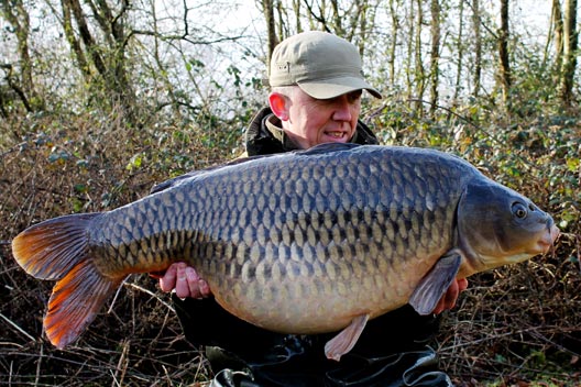 If that wasn’t enough, the same rod that I’d recast to the same area with a lighter lead to cause less disruption was away again at 10am. WTF! Another typical short heavy wintery battle had my nerves jangling and I was soon staring down into the landing net at a new PB common, in the shape of the epic ‘Clint’s Common’ at 47lb!