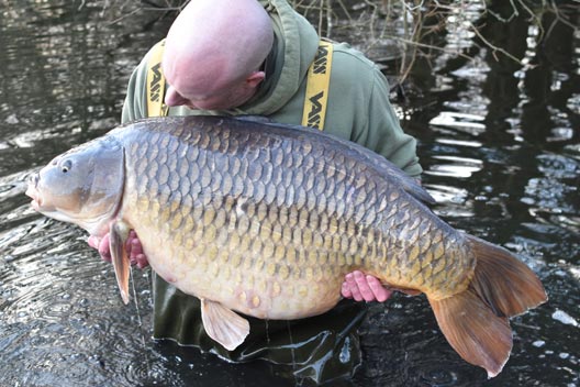 By this point my legs went to jelly and my heart was in my mouth. With snaggy bushes to my left and right and several shallow gravelly raised areas in front of me I just prayed it stayed on. The battle felt as though it went on for ages, just as I gained a few yards it would power off with surging force, it was angry as hell. Minutes later my arms felt pumped and heavy, but fortunately the carp started to tire too. After doing its level best to test the tackle in its bids for freedom, it finally boiled up on the surface and it was only then I realised I was attached to what looked like the fish of a lifetime. It didn’t end there though, as the fish got a second wind and went on another crazy run, then it changed direction and came back on a different path crossing over the other rods, which luckily were back leaded and concealed.