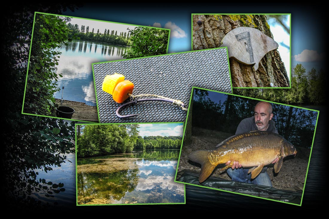 Sky lake in de Marne vallei niet ver van Armentiéres en Brie, is een betaal water dat op mijn radar kam in de winter van 2007 toen ik het één en ander las over het water en ik al snel in contact kwam met een kerel (ben zen naam vergeten) die daar mede eigenaar was en er dus bijna altijd was. Ik vertelde over het contact tegen men maat en we hadden beide wel zin om er te gaan vissen, maar het zou in de zomer zijn omdat men maat enkel verlof in het bouwverlof kon krijgen op zen werk en omdat het ook een periode was op het water dat ze geen boekingen hadden omdat het zomer was en het toen enkele weken stil viel, dus geen andere klanten! Wat mooi was voor ons, en wat nog mooier was, was dat we er gratis mochten komen vissen voor de week. Wat een enorm leuk vooruitzicht was, maar dat nog ver weg was. Maanden van wachten gingen voorbij en alles werd in gereedheid gebracht als we dichter bij de datum kwamen, boilies en al ons tackel werd goed na gezien zodat het tip top was om op dit water te vissen. We wisten dat er enkele hele goeie vissen op zwommen, maar dat het niet simpel was omdat het water al vele jaren werd bevist door goeie en minder goeie vissers (het een betaalwater zijnde) meer hierover in het verloop van het artikel. Het wachten was over en het bouwverlof was begonnen en men maat pikte me op in Leuven waar ik toen woonden en we gingen 340km karren en met de nodige tussen stops stonden we 5u later voor de poort van het water. Even bellen om te melden dat we voor de poort stonden, konden we bijna niet meer wachten om het water te zien. Want van voor de poort zag je niets van het water in deze periode van het jaar (volle zomer en alles vol blad) maar we moesten niet lang wachten, want er kwam een pickup aan gesnord waar een vent uit stapte die de poort open deed en zij volg me maar nadat hij de poort weer had dicht gedaan. Dus we volgde hem naar de lodge die achteraan lag, die ontmoeting was hartig en we stelde ons zelf voor en de vent ook samen met ze vrouw. Het bleek dat Tim (waar ik de deal mee had) niet langer mede eigenaar was en dat Andy en Bernie een andere partner hadden nu, maar die was er ook niet. Bon enorm vriendelijke mensen en de deal die ik had was totaal geen probleem en we konden dus doen waar we gekomen waren. Bij een biertje kregen we de nodige uitleg van Andy ivm de regels en het gebruikte aas dat blijk particels te zijn. Die wij niet bij hadden maar Andy had genoeg op voorraad en we konden bij hem wel de nodige kilo’s kopen, wat we ook deden. Hij zij dat boilies hier niet echt werkte, maar ons zijnde waren we daar niet zo zeker van dus, zouden we zeker één hengel met bollen vissen en de andere 2 met particels. Het werd duidelijk na het gesprek met Andy dat een bepaalde rig heel goed werkte (maar we hadden niet de juiste haken bij) maar al gauw had ik een pakje van de haken van Andy gekregen!!