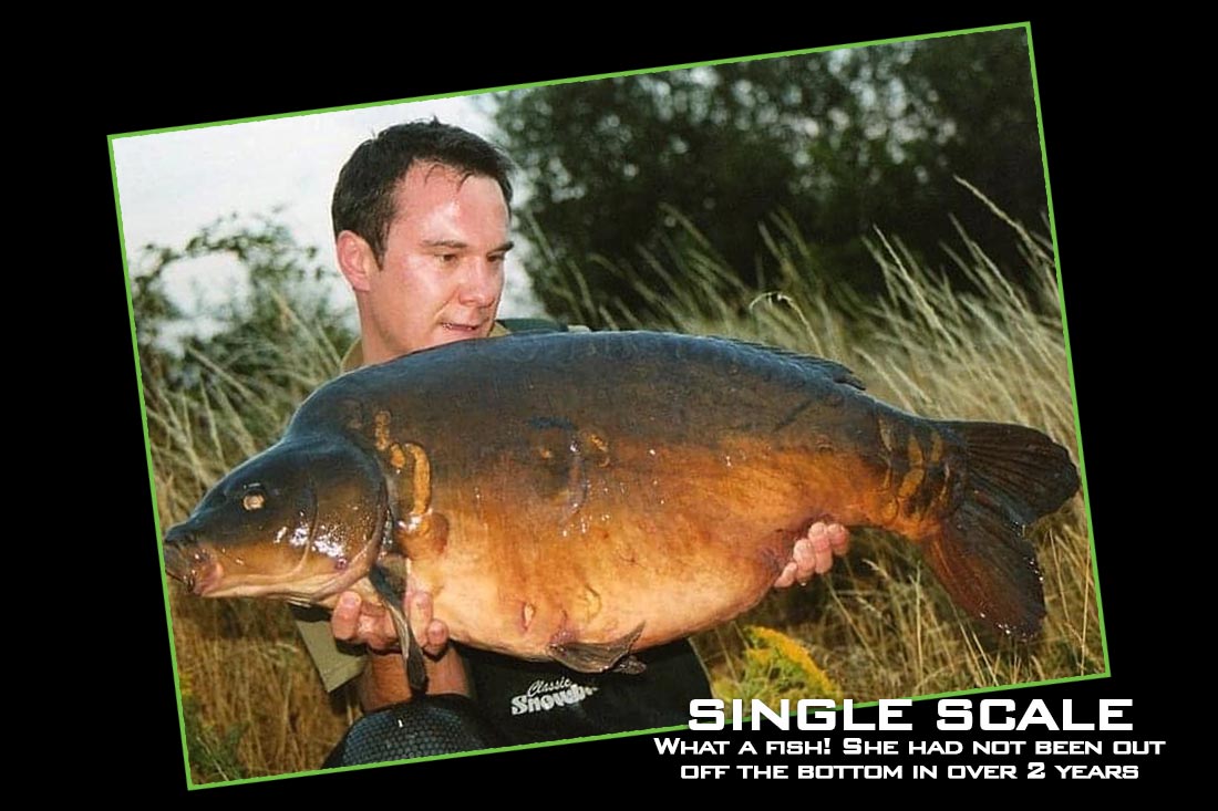 Things were going quite well for me on there, catching some of the stunning carp that lived in the lake. By the end of the summer I had my spots rocking, with the carp visiting them regularly for a little feed. There was one fish in particular that everyone was after, the mighty Single Scale. It was a cracking big framed mirror of around 38lb, a real old looking mirror carp, with wrinkly skin and a single big scale right in the middle of its body!