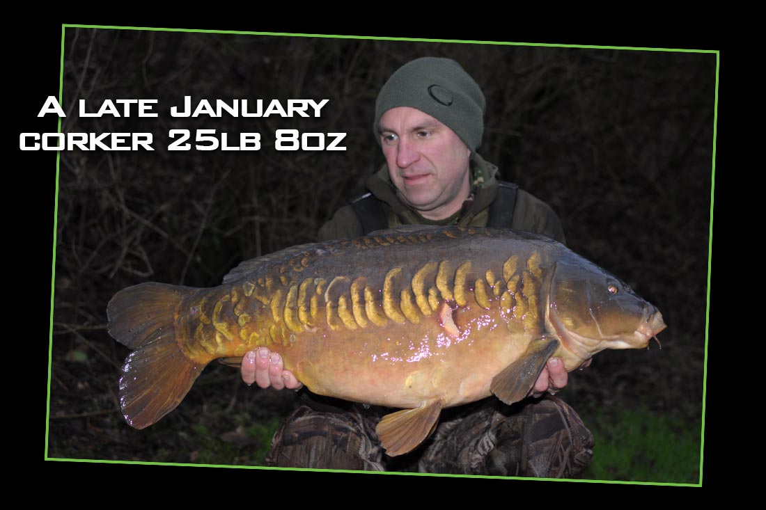 It was a glorious morning and I really did not want to leave but had to work, so it wasn’t a choice despite buzzing with my last gasp January carp from Dinton! You could have been forgiven for thinking it was March that morning, as the sun felt so much stronger. I was just finishing packing up when the middle rod alarm signalled another stuttering take with the indicator dropping, then lifting. Without hesitation I struck the rod into the air, with the tight GTHD cutting through the surface before going limp, another one got away, damn zigs! Amazingly, a fish boshed about a rod length behind the spot just as it happened. I knew Ben was in with a shout, with him being a good angler and the fact fish were there without angler pressure, and the next day he’d text me to say he’d had a 36lb’er, a fish I’d had the previous year. I was well happy for him, as I am for all my fishing pals when they catch.