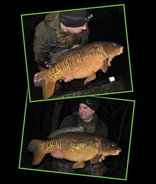 Peering into the net, I could see it was another nice looking scaley banger! I called my mate Charlie over to help me out with the pictures (he had just arrived after his short journey from Bolton!). As we got her on the net Charlie recognised him much quicker than I did – Mr Angry! A proper original there, laying on my unhooking mat! We weighed him in at 32lb 7oz, but truthfully the weight was irrelevant, it was one of the old ones, and that was all that mattered!