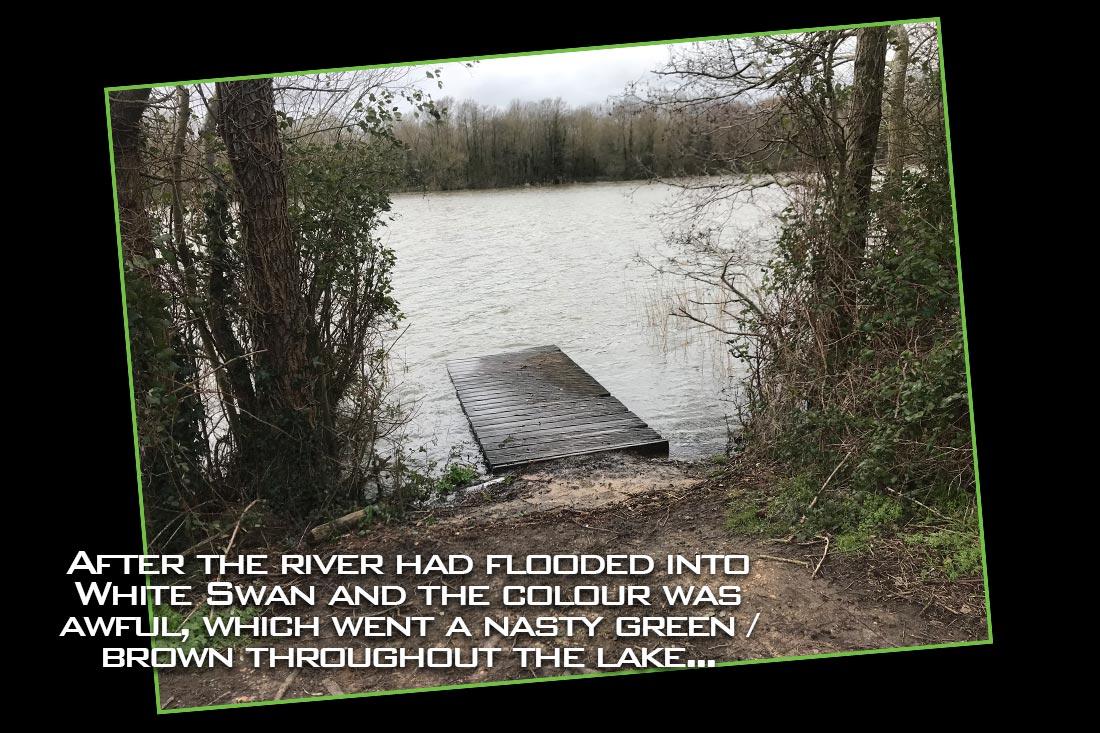 I did a couple more trips, but it was getting busier and then, we had that rain. So much rain! The River Loddon burst its bank, but luckily it was not quite as bad as a few winters ago, before my time, when a number of famous fish went for a long swim to pastures new. After the river had flooded into White Swan and the colour was awful, which went a nasty green/brown throughout the lake. This changed the fishing drastically, as you would expect, and the lake shut down. In fact, we all pretty much gave up on the place for a good 3-4 weeks.